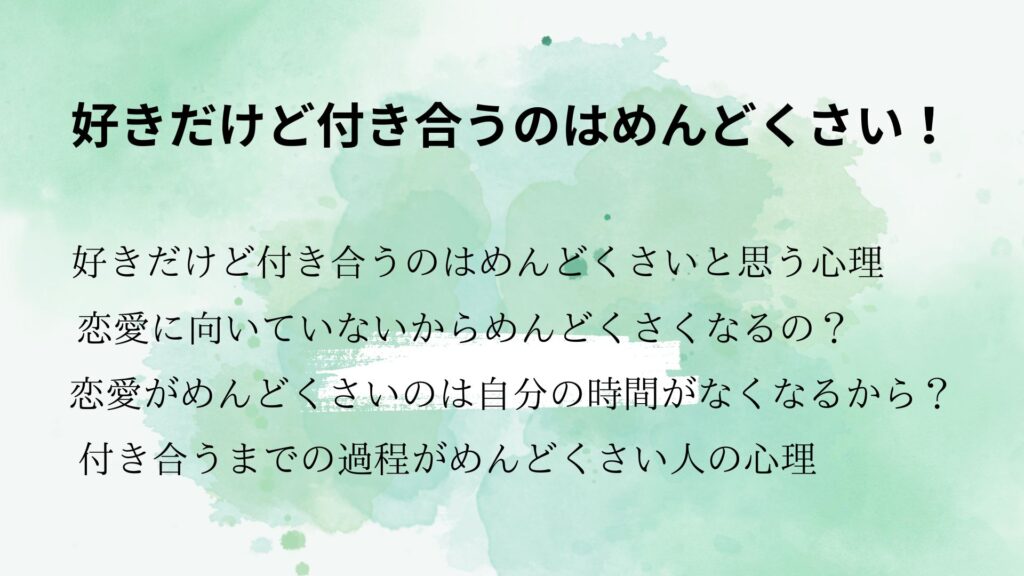 好きな人はいるけれど、付き合うことはめんどくさいと感じ、踏み切れない人は案外と多いです。